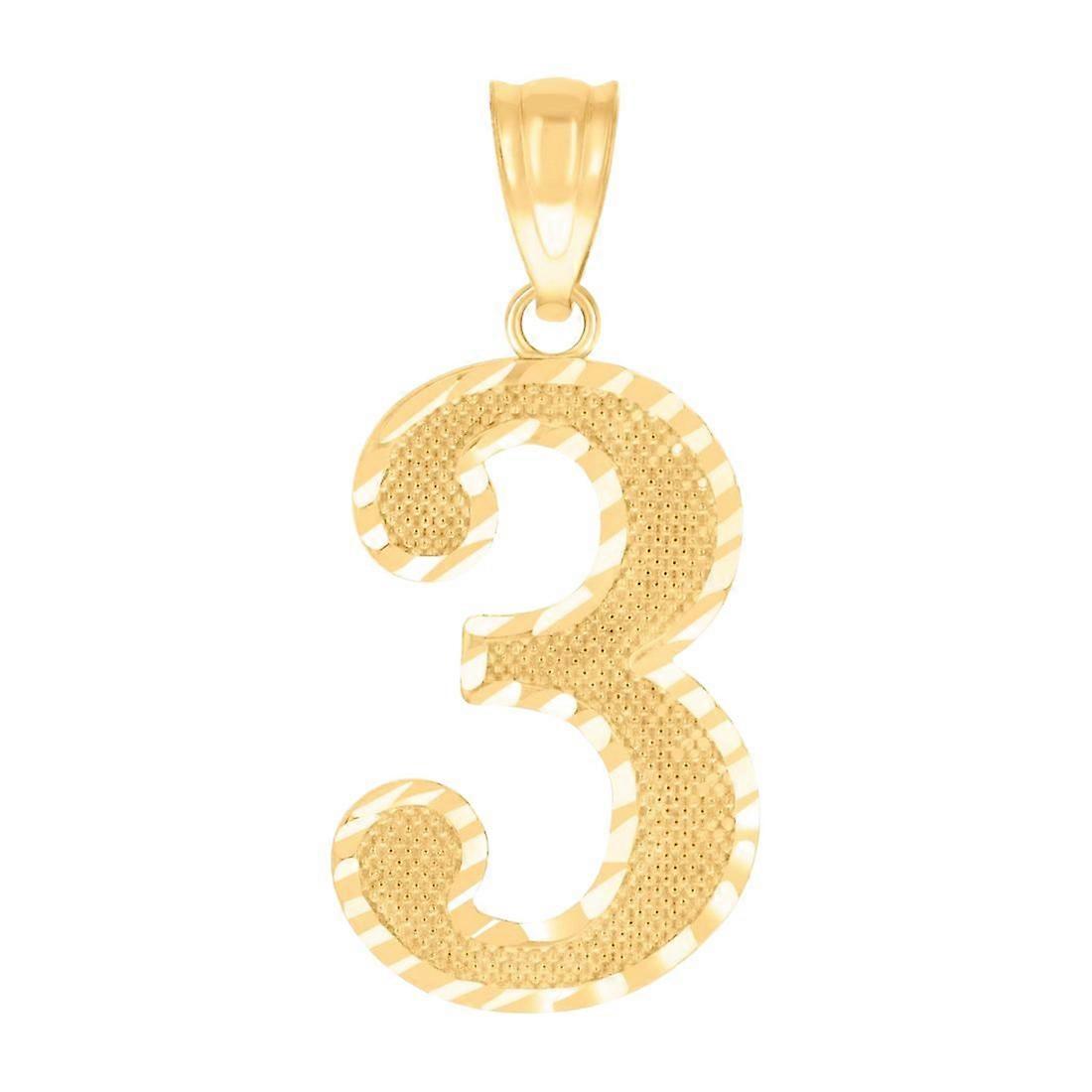 10k Yellow Gold Unisex Sport game Number 3 Nugget Charm Pendant Necklace 26.4x12.1mm Wide-Pendant for Women