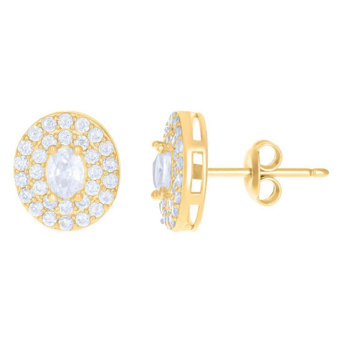 10k Yellow Gold Womens Oval Round Cubic Zirconia Fashion Stud Earrings 9.5x8.3mm Wide-Stud Earring for Women