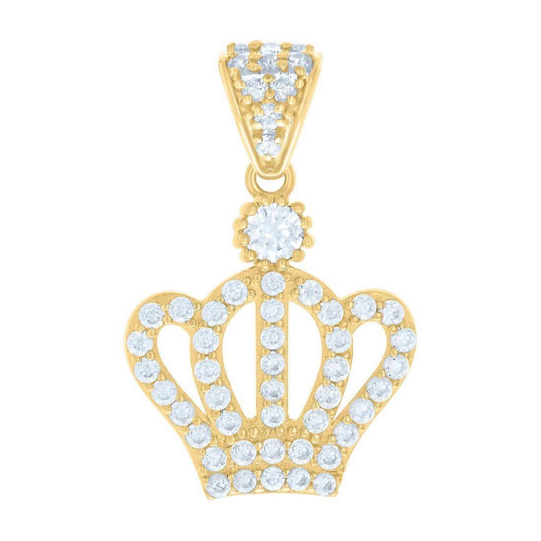 10k Yellow Gold Womens Cubic Zirconia Crown Fashion Charm Pendant Necklace 22.8x14.6mm Wide-Pendant for Women