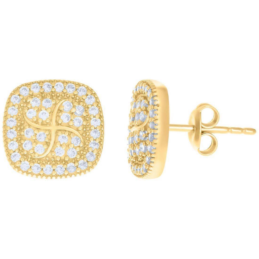 10k Yellow Gold Womens Cubic Zirconia Square Fashion Stud Earrings 12x12mm Wide-Stud Earring for Women