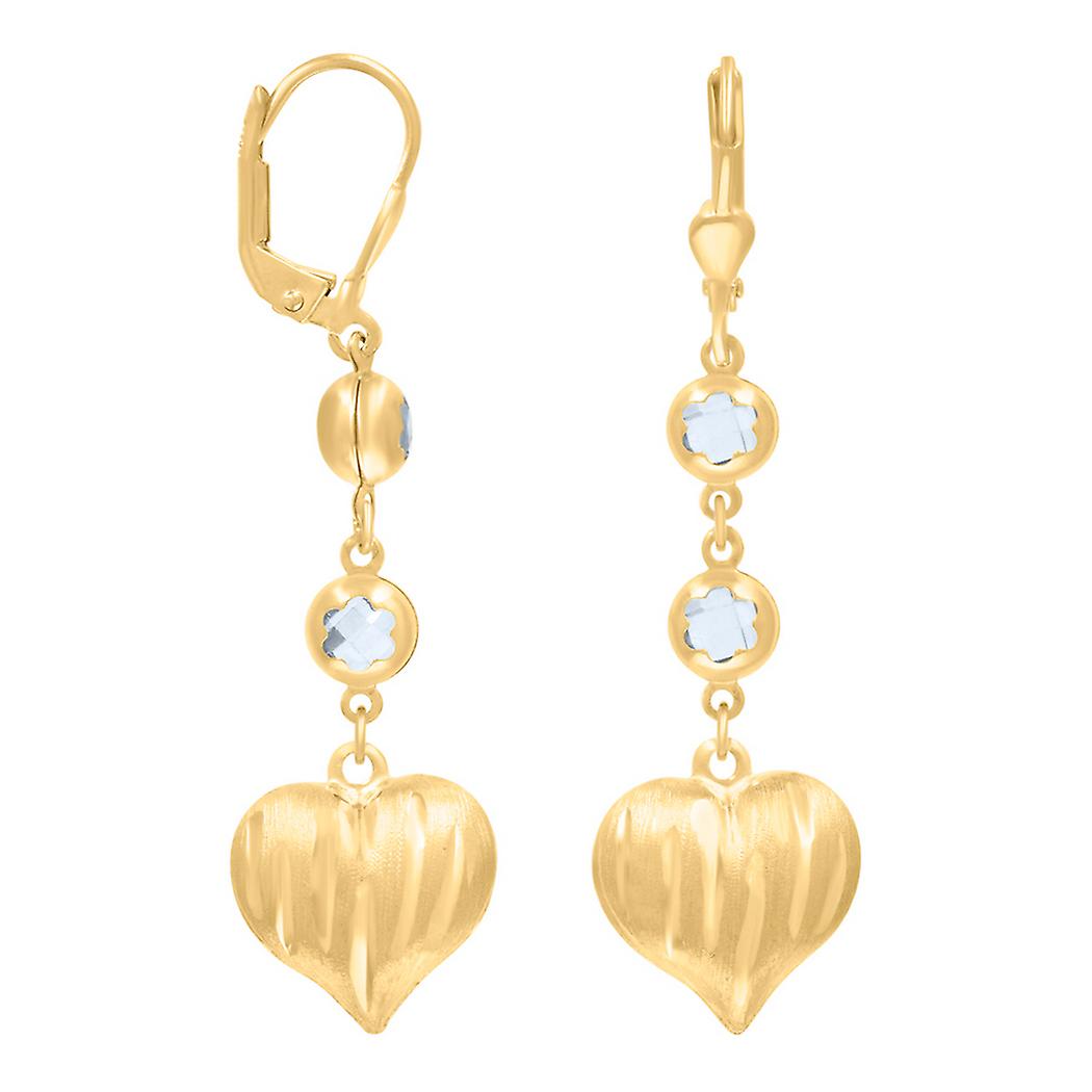 10k Yellow Gold Womens Cubic Zirconia Love Heart Dangle Leverback Earrings 48.9x12.9mm Wide-Dangle Earring for Women