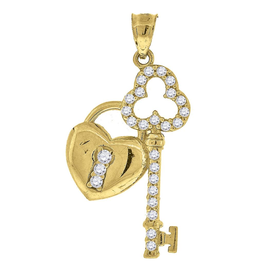 10k Yellow Gold Womens Cubic Zirconia CZ Key To My Heart Love Charm Pendant Necklace 33.7x17.30mm-Pendant for Women