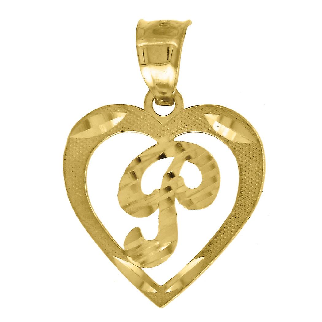10k Yellow Gold Womens Sparkle Cut Love Heart Letter Name Personalized Monogram Initial P Charm Pendant Necklace 20.4x14