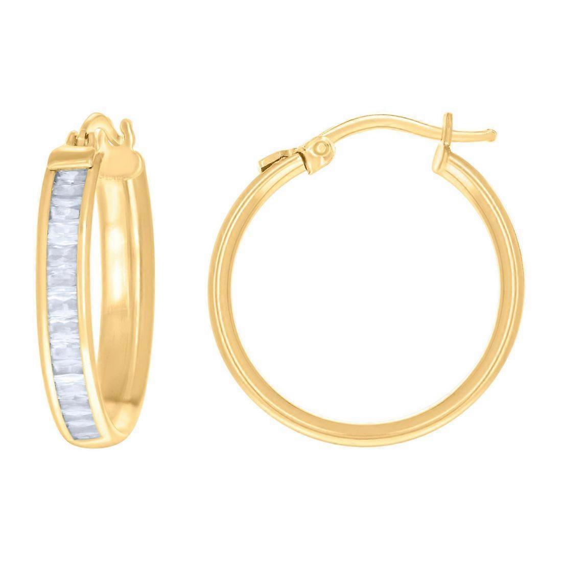 10k Yellow Gold Womens Baguette Cubic Zirconia Fashion Hoops Earrings 21.6x3.4mm Wide Hoop Earring for Women