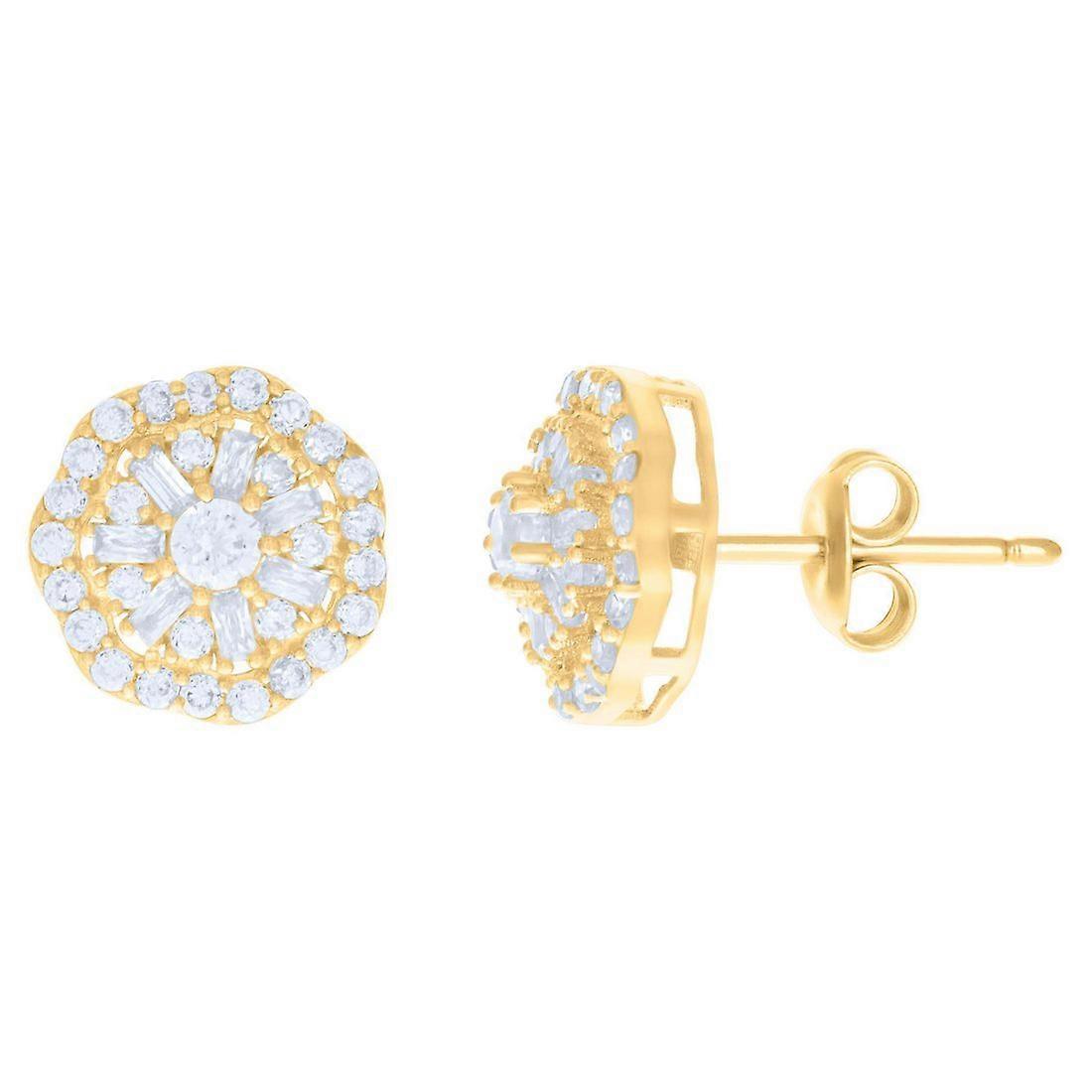 10k Yellow Gold Womens Baguette Round Cubic Zirconia Octagon Fashion Stud Earrings 9.8x9.8mm Wide-Stud Earring for Women