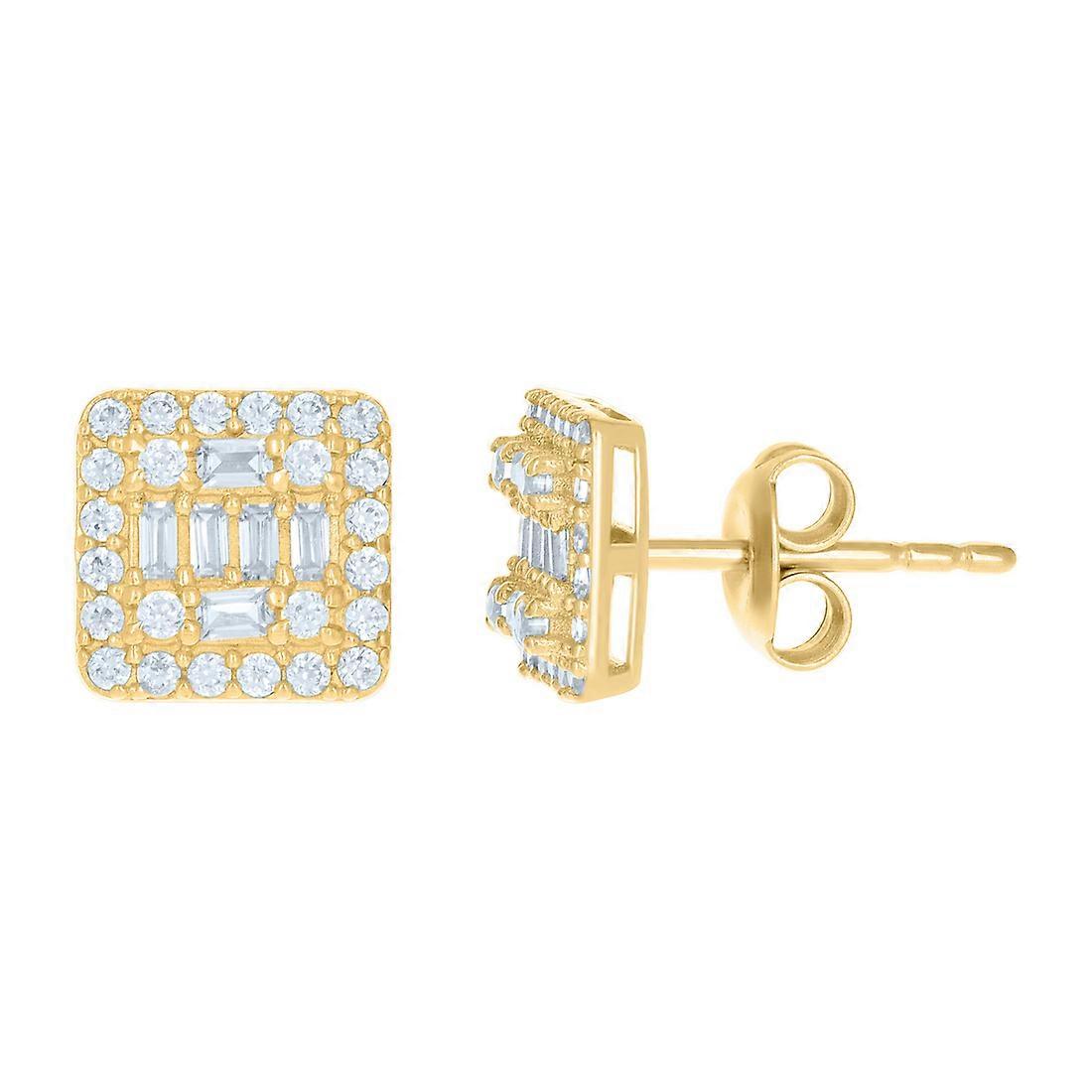 10k Yellow Gold Womens Baguette Round Cubic Zirconia Square Stud Earrings 8x8mm Wide-Stud Earring for Women