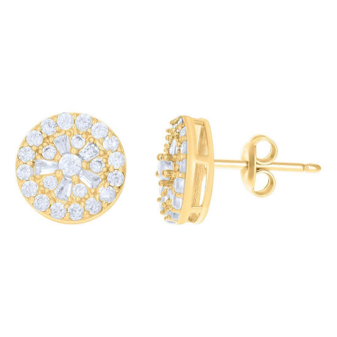 10k Yellow Gold Womens Baguette Round Cubic Zirconia Fashion Stud Earrings 9.7x9.7mm Wide-Stud Earring for Women