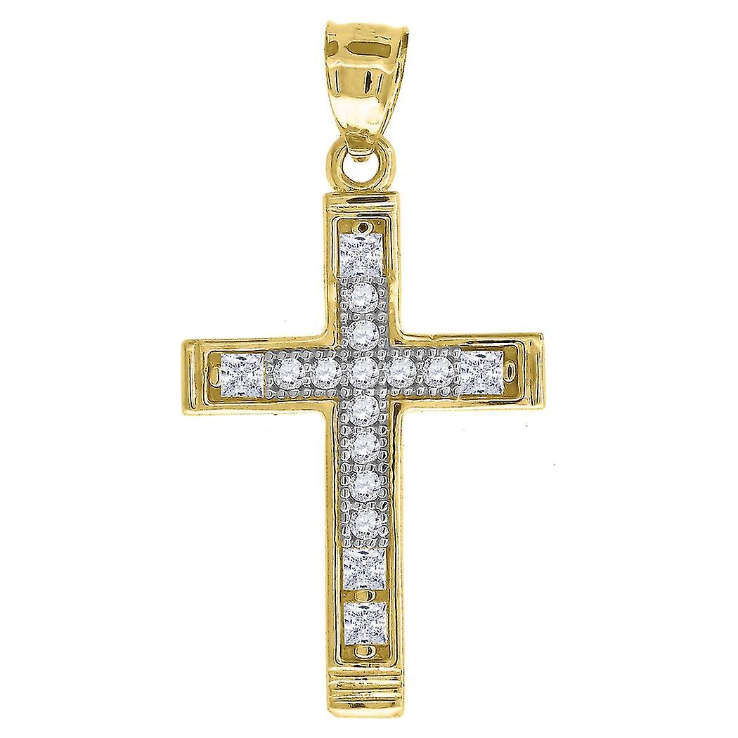 10k Yellow Gold Womens Round Cubic Zirconia CZ Religious Faith Cross Pendant Necklace 31.5x16.60mm Wide-Pendant for Wome