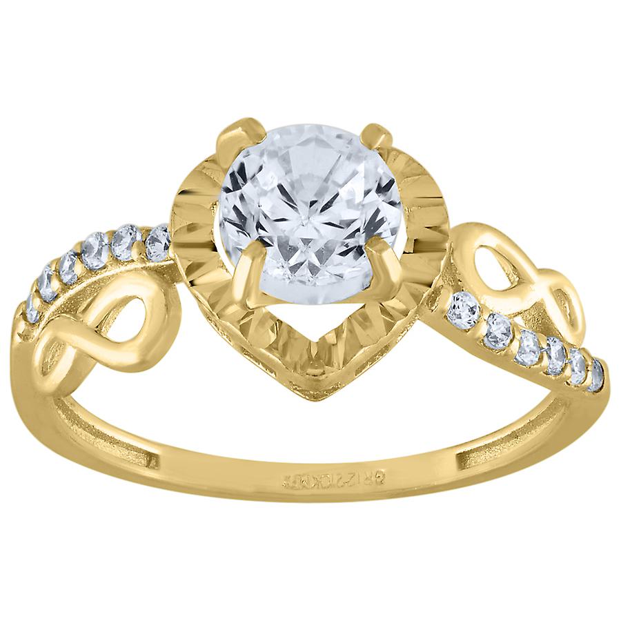 10k Yellow Gold Womens Round Cubic Zirconia Dc Love Heart Twisted Halo Engagement Ring Statement-Ring for Women