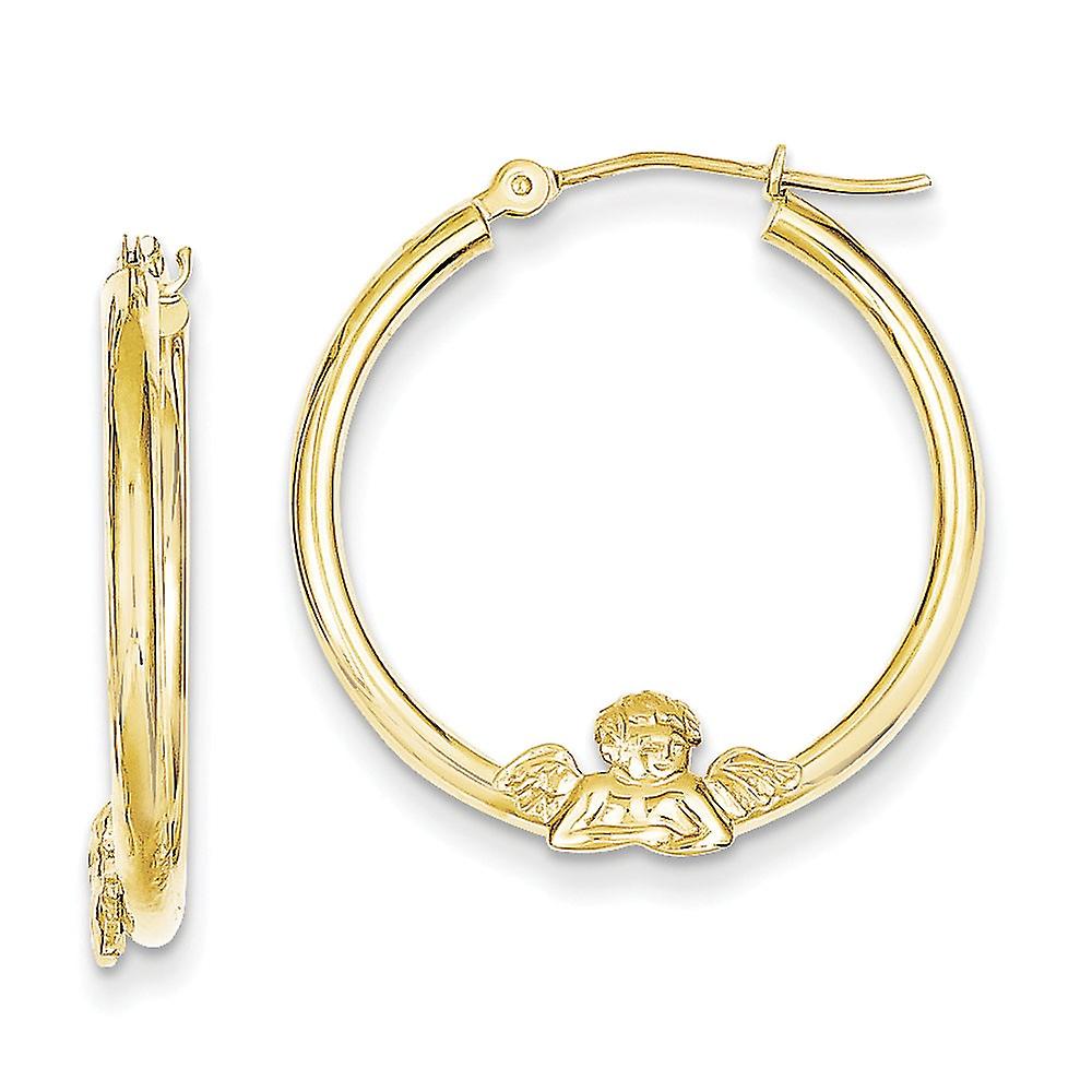 10k Yellow Gold Hollow Polished Hinged post Religious Guardian Angel HOOP Earrings 20x3mm Wide-Hoop Earring for Women
