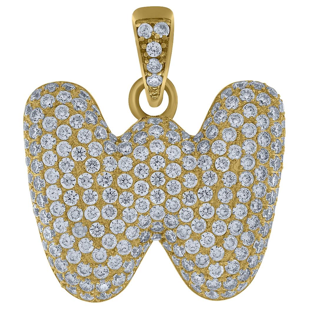 10k Yellow Gold Unisex Cubic Zirconia CZ Initial Letter W Charm Pendant Necklace 24.3x18.60mm Wide-Pendant for Women