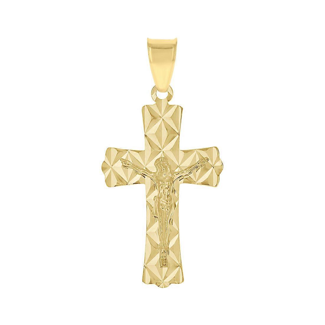 10k Yellow Gold Unisex Crucifix Cross Religious Pendant Necklace 33.1x15.7mm Wide-Pendant for Women