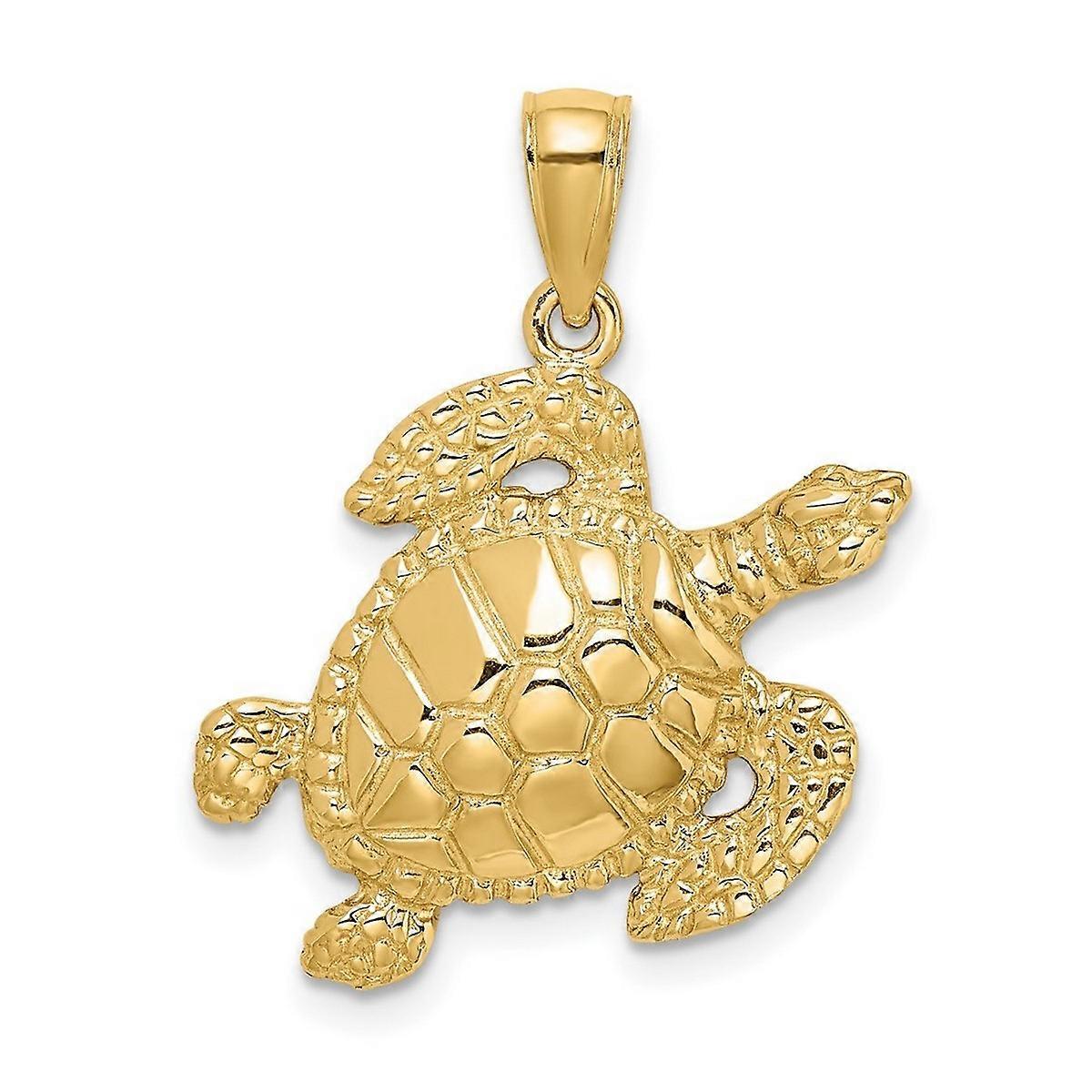 10k Gold Sea Turtle High Polish and Textured Charm 26.5x22.6mm Wide Pendant Necklace for Women