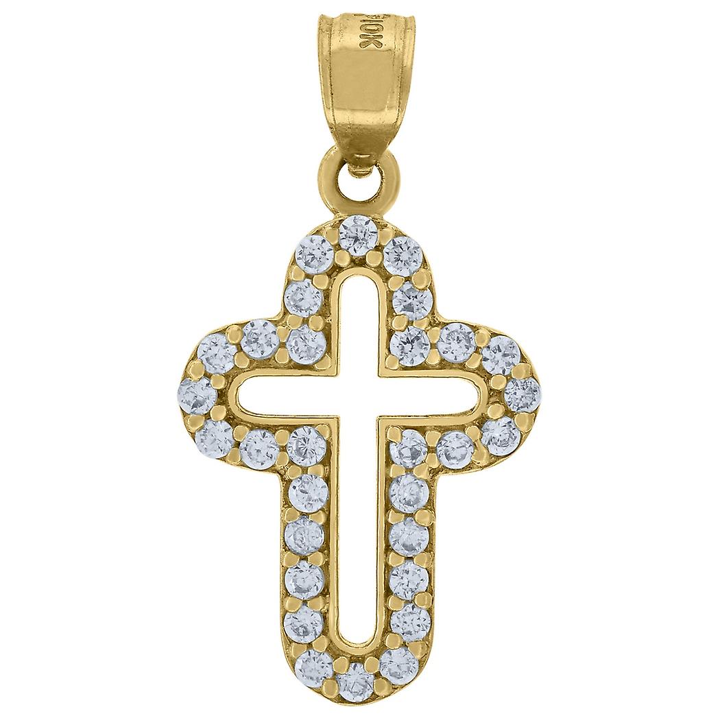 10k Gold Cubic Zirconia Unisex Cross Height 27.2mm X Width 14.1mm Religious Charm Pendant Necklace-Pendant for Women