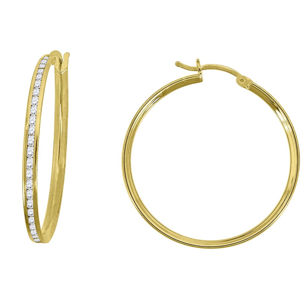 10k Gold Cubic Zirconia Womens Single Row 2mm X 30mm Hinged Hoops Hugs Earlobe Earrings Hoop Earring for Women