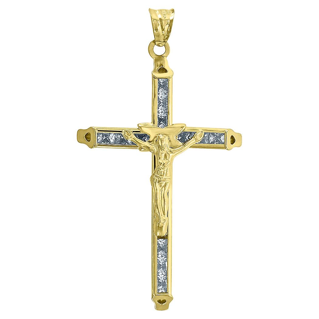 10k Gold Two tone Mens Cross Crucifix Height 40.8mm X Width 23.4mm Religious Charm Pendant Necklace for Men