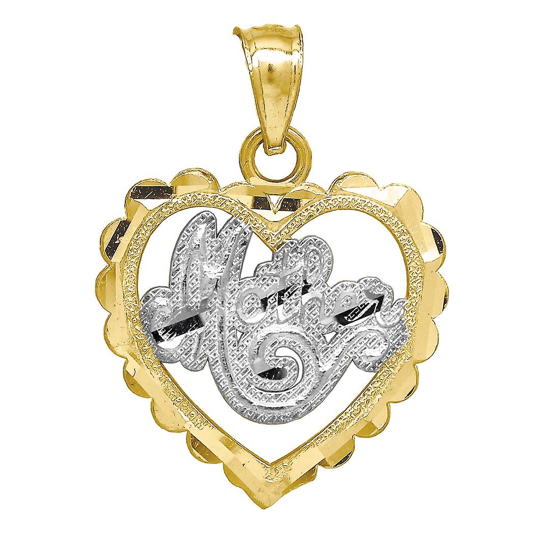 10k Gold Two tone Dc Womens Mother Height 21.7mm X Width 15.7mm Love Heart Charm Pendant Necklace-Pendant for Women