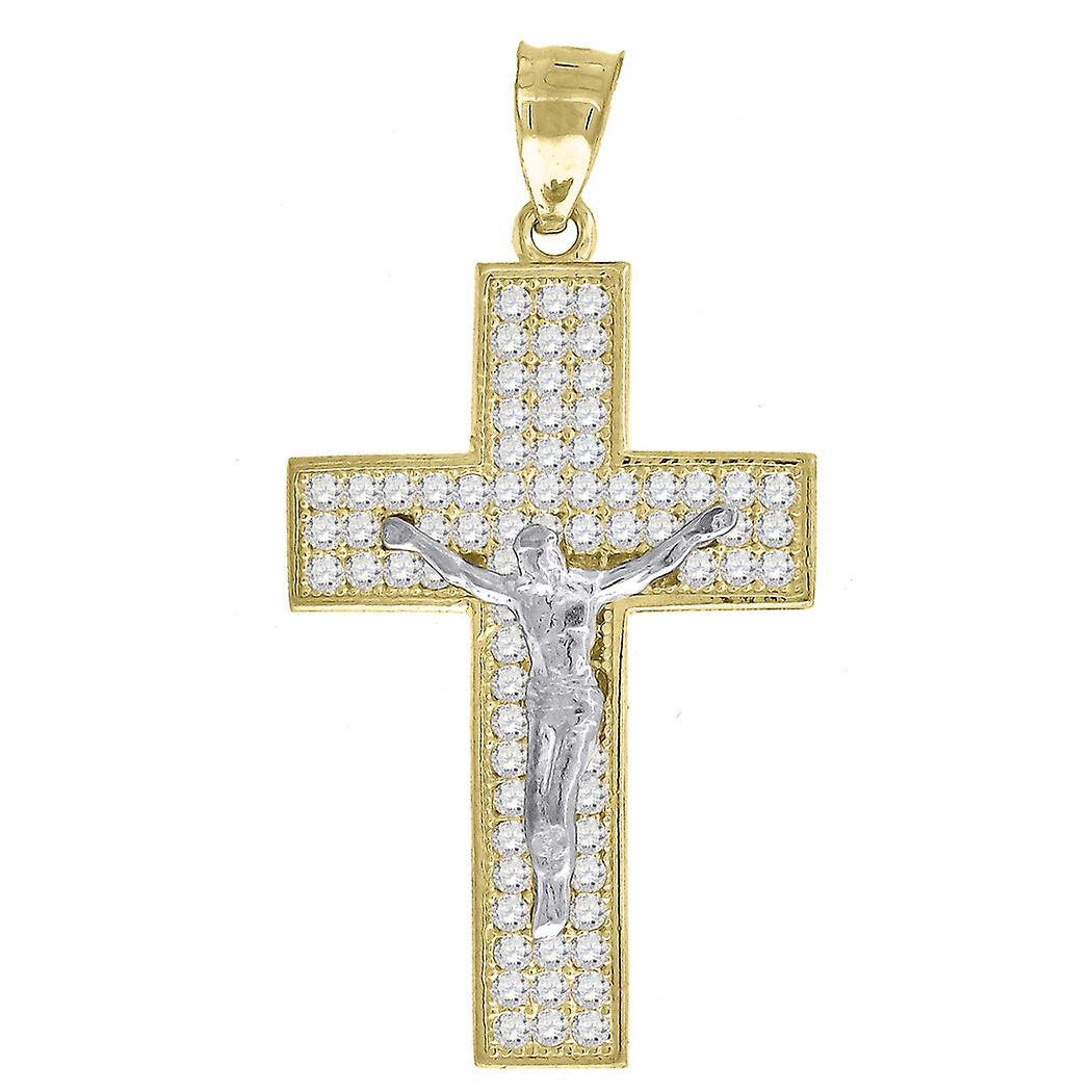 10k Gold Two tone CZ Mens Cross Crucifix Height H36.5mm X Width 18.5mm Religious Charm Pendant Necklace for Men