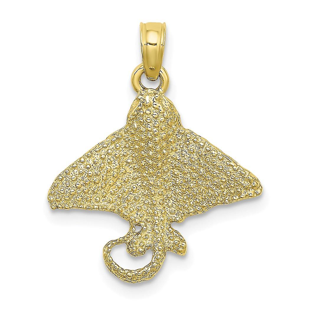 10k Gold Spotted Eagle Ray Textured / 2 d Charm Pendant Necklace for Women - 1.1 Grams