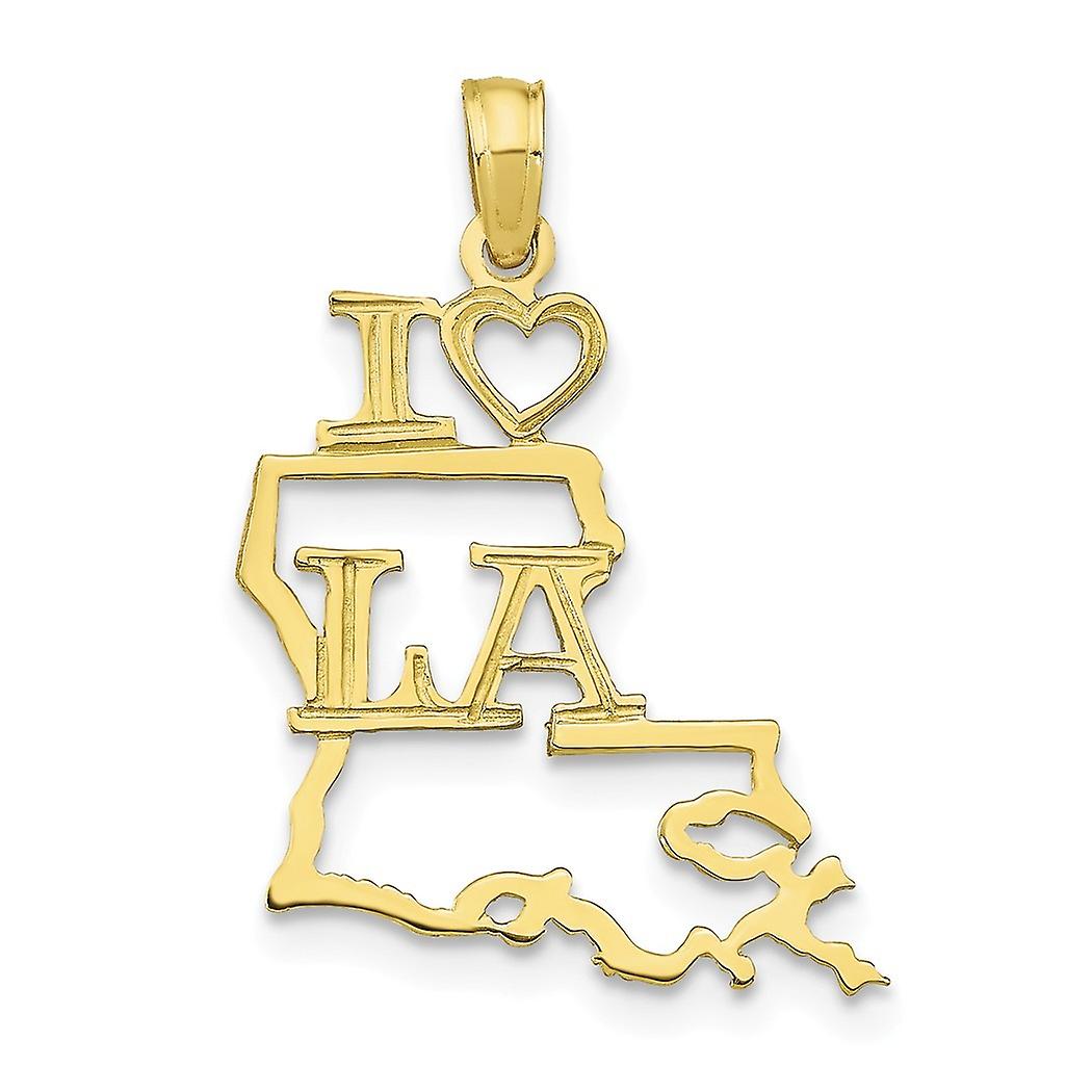 10k Gold Solid Louisiana State Pendant Necklace-Pendant for Women - .6 Grams
