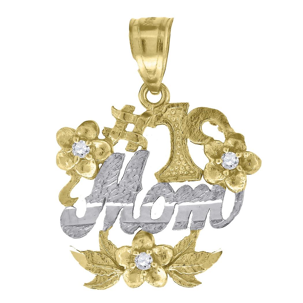 10k Gold Two tone Cubic Zirconia Womens Flower No.1 Height 23.1mm X Width 17.7mm Mom Charm Pendant Necklace-Pendant for