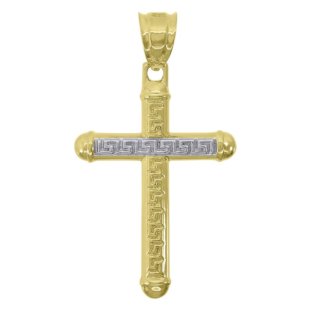 10k Gold Two tone Mens Cross Height 44.4mm X Width 25.3mm Religious Charm Pendant Necklace for Men