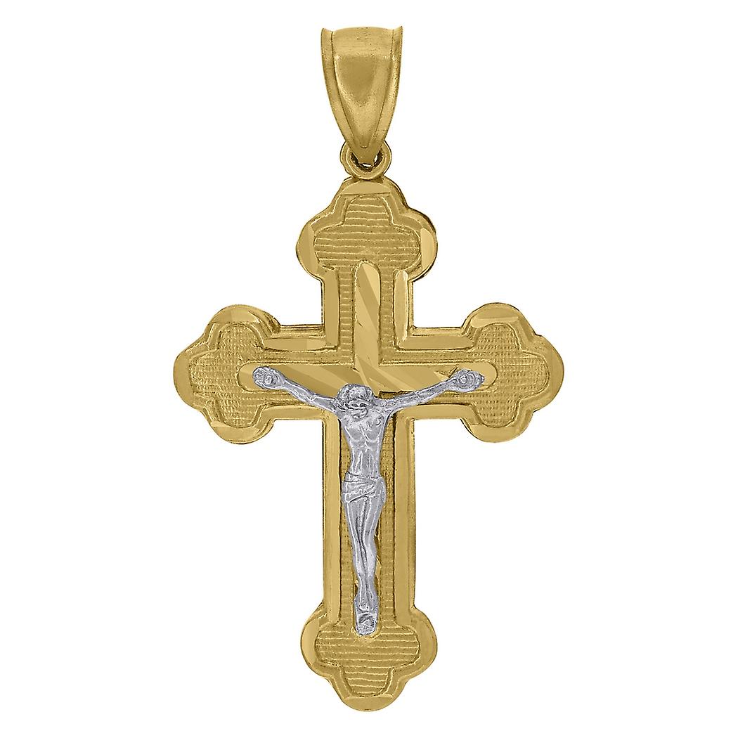 10k Gold Two tone Dc Mens Cross Crucifix Height 48.6mm X Width 27.2mm Religious Charm Pendant Necklace for Men
