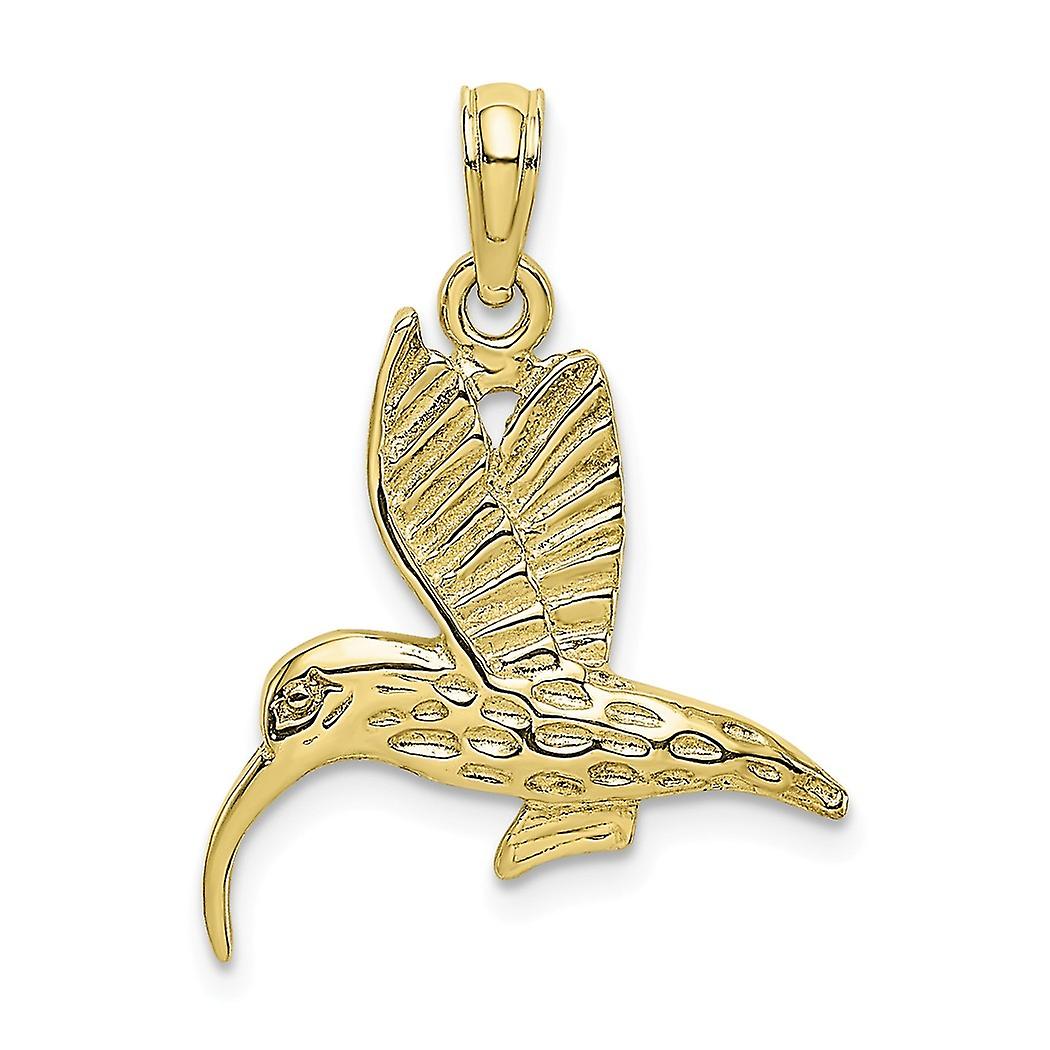 10k Gold Hummingbird Flying 2 d and Textured With Curved Beak Charm Pendant Necklace for Women