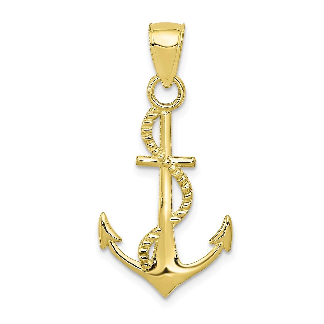 10k Gold Polished Nautical Ship Mariner Anchor With Rope Pendant Necklace 30x15mm Wide-Pendant for Women