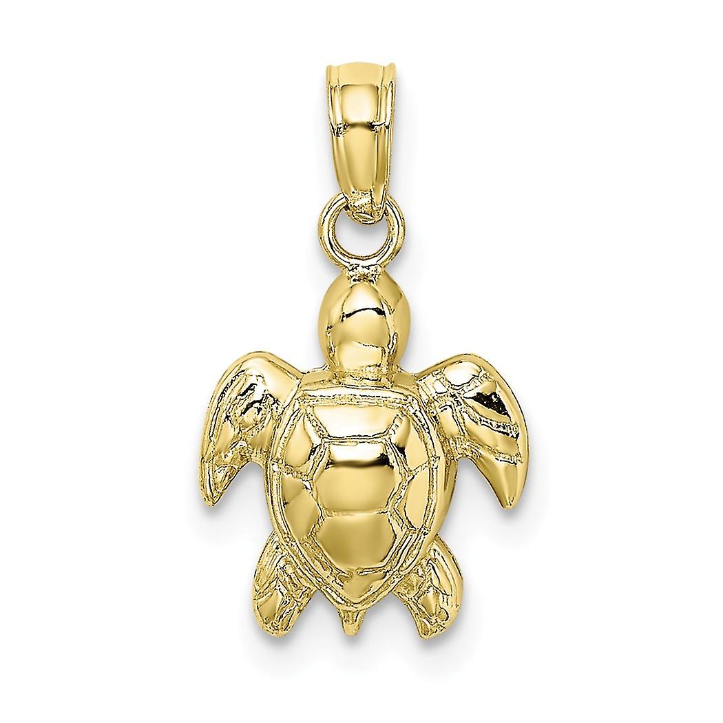 10k Gold Mini Sea Turtle 2 d and Textured Charm 16.5x10.3mm Wide Pendant Necklace for Women