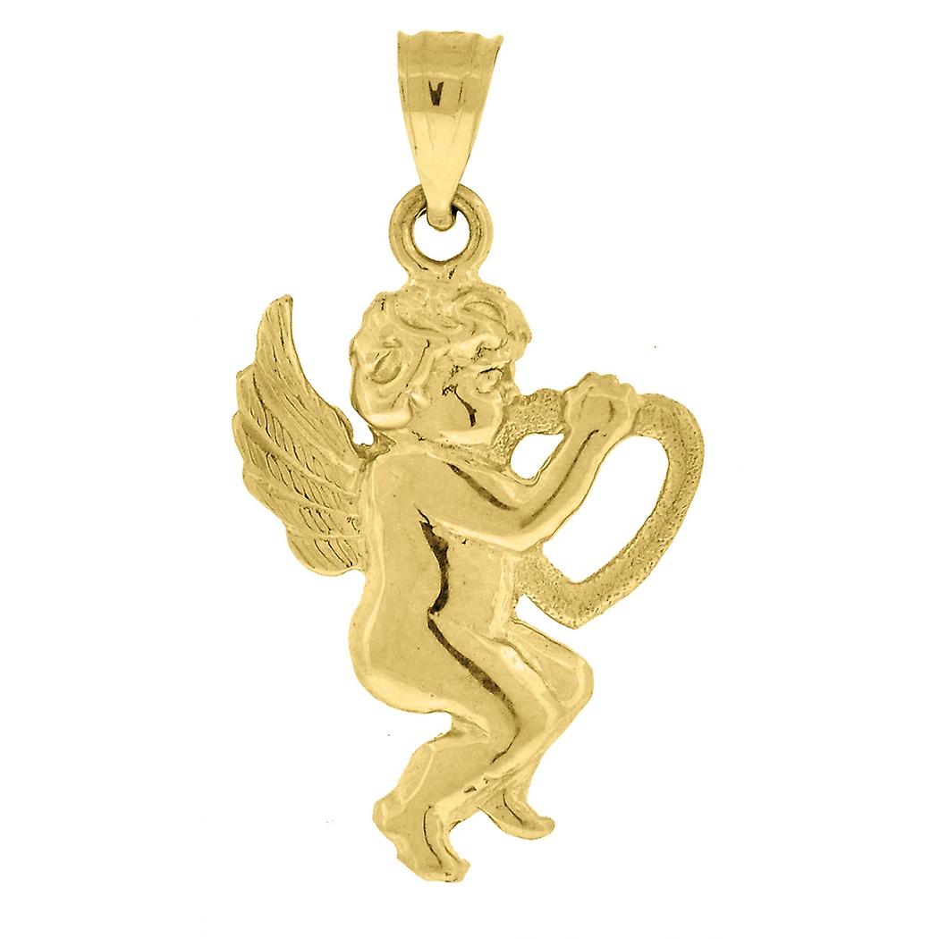 10k Gold Unisex Angel Height 29.8mm X Width 16.5mm Religious Charm Pendant Necklace-Pendant for Women