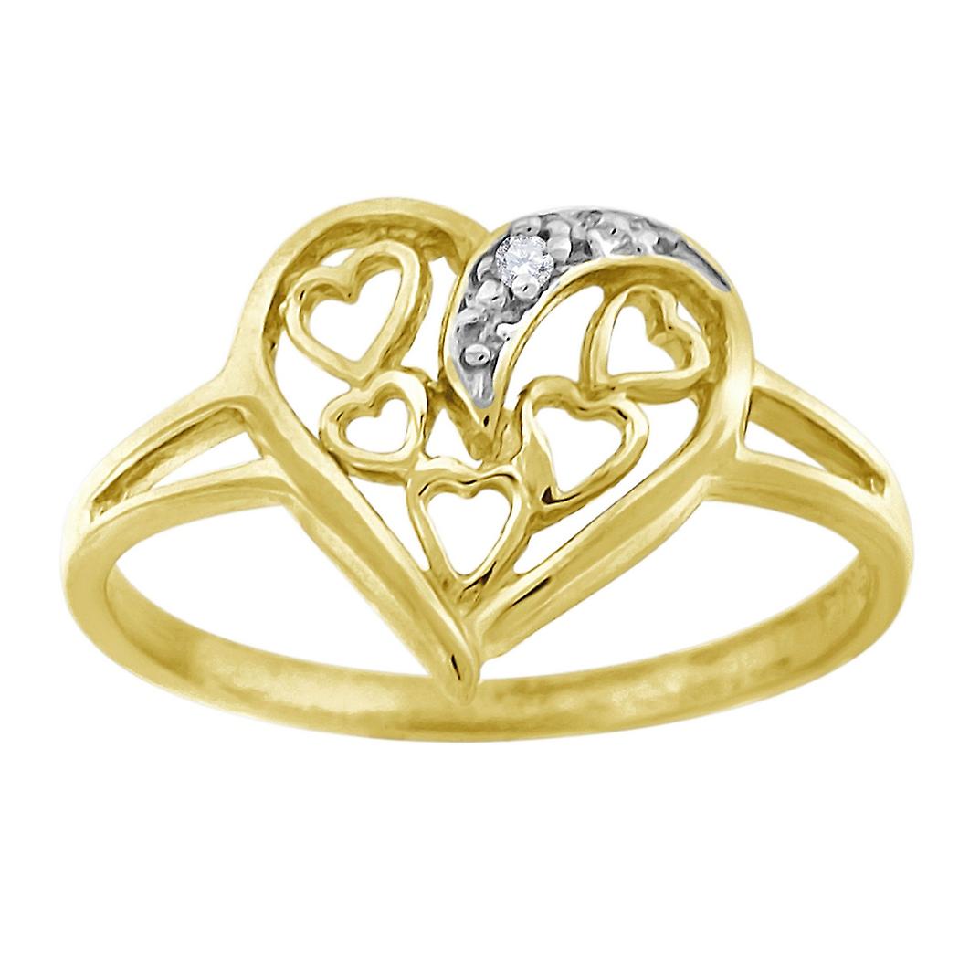 10k Gold Womens Two tone Cubic Zirconia Love Heart Band Ring Statement-Ring for Women and Men