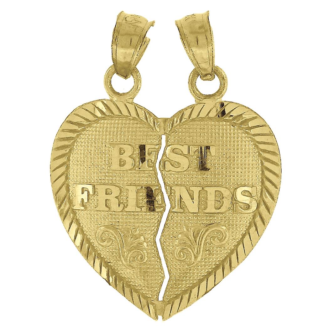 10k Gold Dc Unisex Best Friends Broken Height 24.7mm X Width 18.9mm Love Heart Charm Pendant Necklace-Pendant for Women