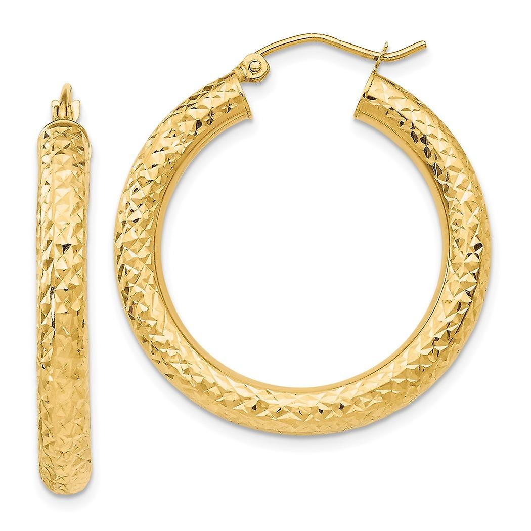 10k Solid Yellow Gold Sparkle Cut 4mm Round Hoop Earrings 30mm Long 4mm Thick-Hoop Earring for Women