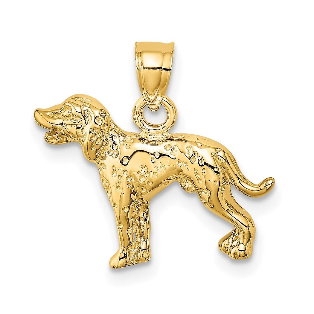 10k Solid Yellow Gold Dalmatian Animal Pet Dog Charm 17.2mm Long Pendant Necklace for Women