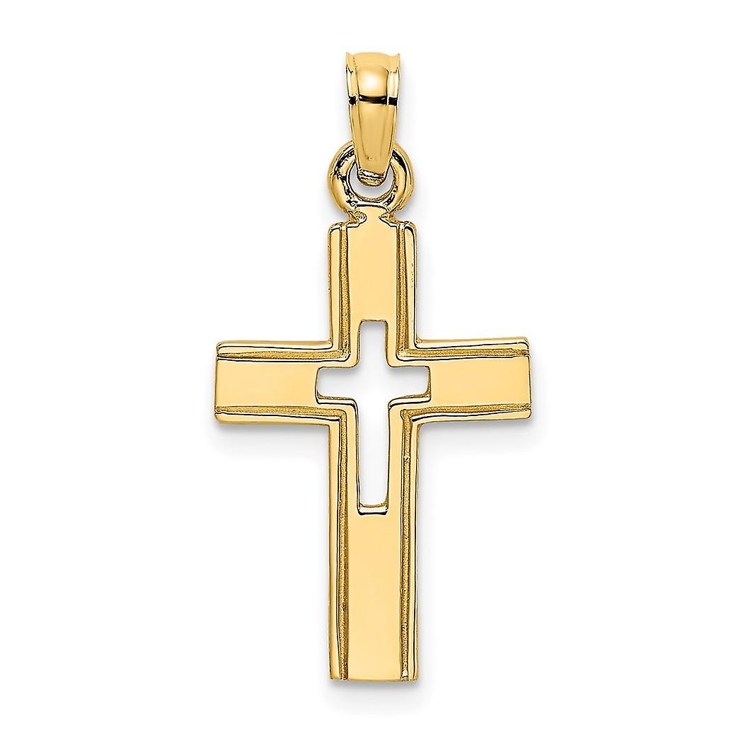 10k Solid Yellow Gold Polished and Cut out Religious Faith Cross Charm 19mm Long Pendant Necklace for Women