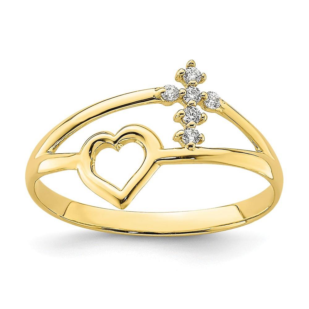 10k Solid Yellow Gold Love Heart and Religious Faith Cross Ring Size 7.00 Statement-Ring for Women