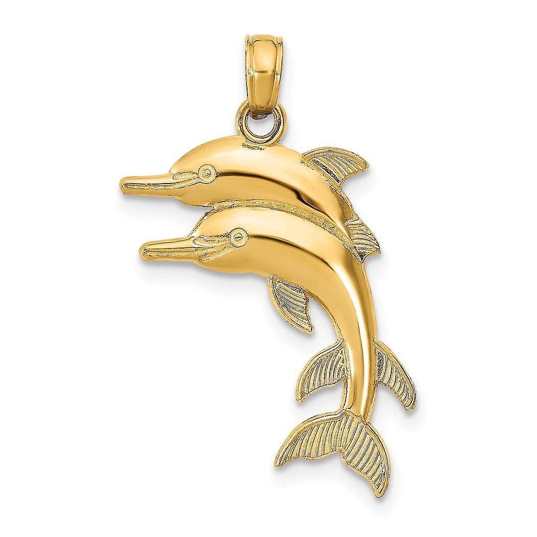 10k Solid Yellow Gold 2 d Two Jumping Dolphins Charm Pendant Necklace for Women - 1.2 Grams