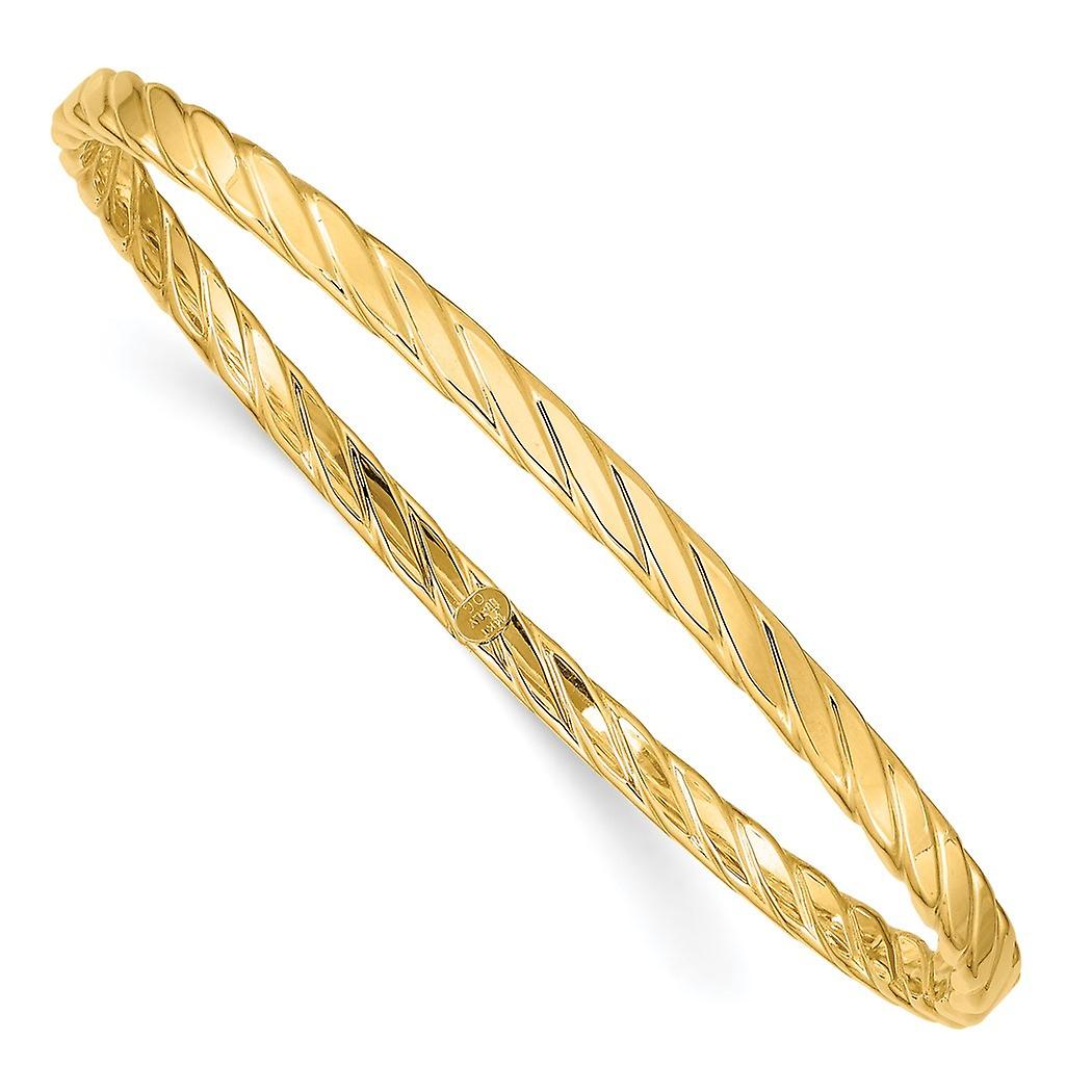 10k Solid Yellow Gold 4mm Textured Twist Slip on Bangle Bracelet Cuff-Bracelet for Women - 4.0 Grams