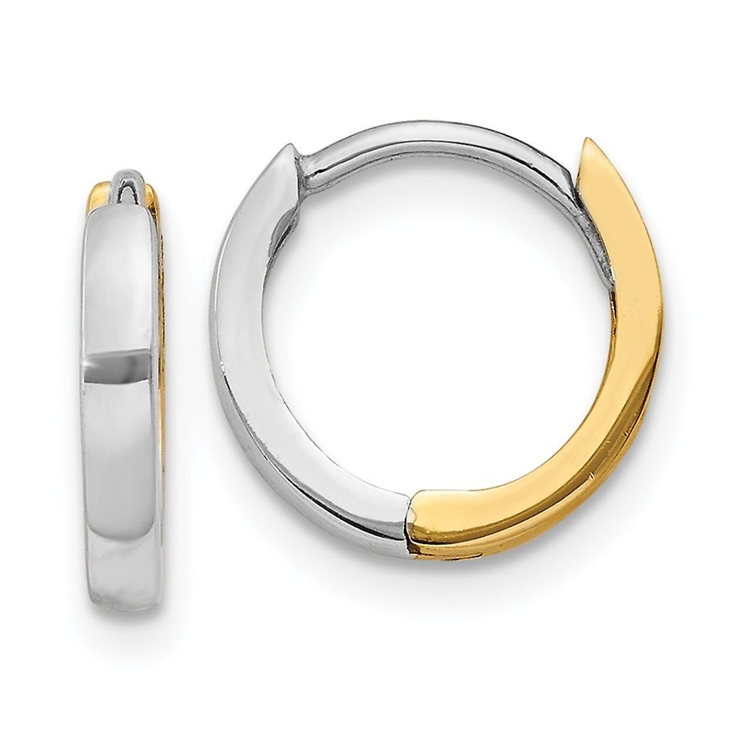 10k Two-tone 1.75mm Hinged Hoop Earrings - Measures 7x2mm Wide 1.75mm Thick - .6 Grams In 10k Yellow Gold - - Width of Item: 1.5 mm - Length of Item: 7 mm - Earring Closure: Post-Notch & Lock - Earring Type: Hoop - Finish: Polished - Feature: Solid -
