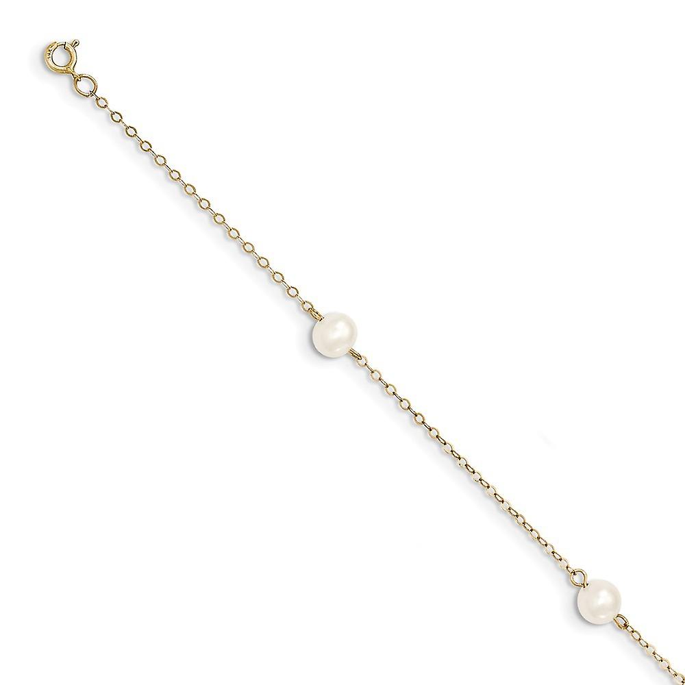 10k Solid Gold 5 6mm White Near Round Freshwater Cultured Pearl 3 station Bracelet 7.25 Inch Link-Bracelet for Women