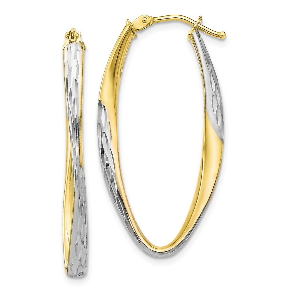 10k Twisted Polished Hinged hoop Gold White Rhodium Plated Sparkle Cut-Hoop Earrings 36x34.7mm Wide 2.75mm Thick-Hoop Ea