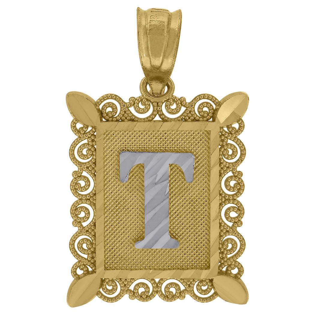 10k Two tone Gold Unisex Sparkle Cut Letter Name Personalized Monogram Initial T Charm Pendant Necklace 20.9x12.20mm Wid