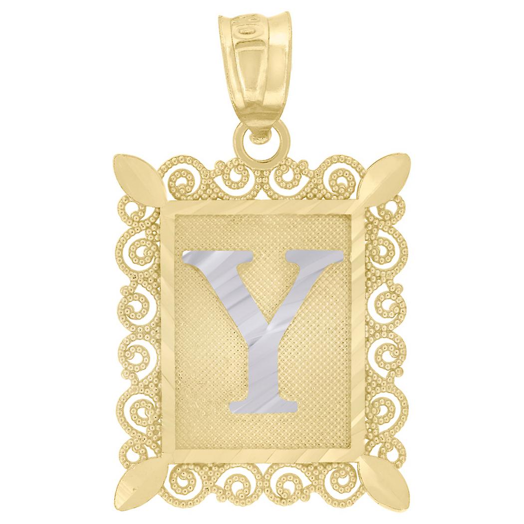 10k Two tone Gold Unisex Sparkle Cut Letter Name Personalized Monogram Initial Y Charm Pendant Necklace 25.1x15.70mm Wid