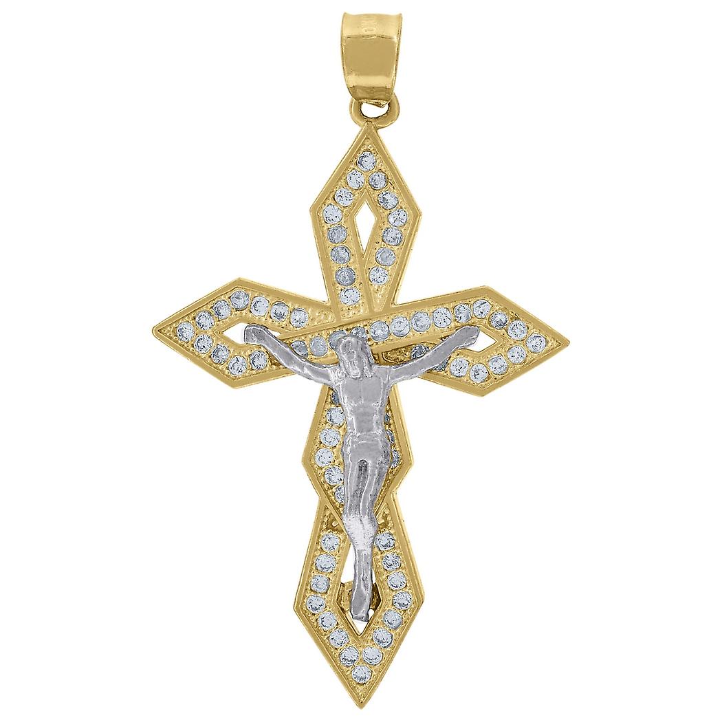 10k Two tone Gold Unisex Cubic Zirconia CZ Crucifix Cross Religious Charm Pendant Necklace 46x26.6-Pendant for Women