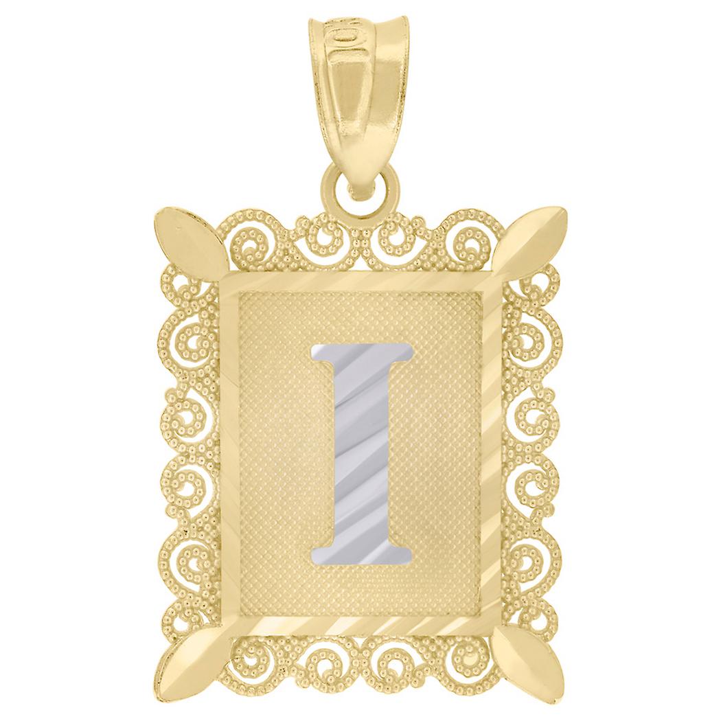 10k Two tone Gold Unisex Sparkle Cut Letter Name Personalized Monogram Initial I Charm Pendant Necklace 25.1x15.70mm Wid