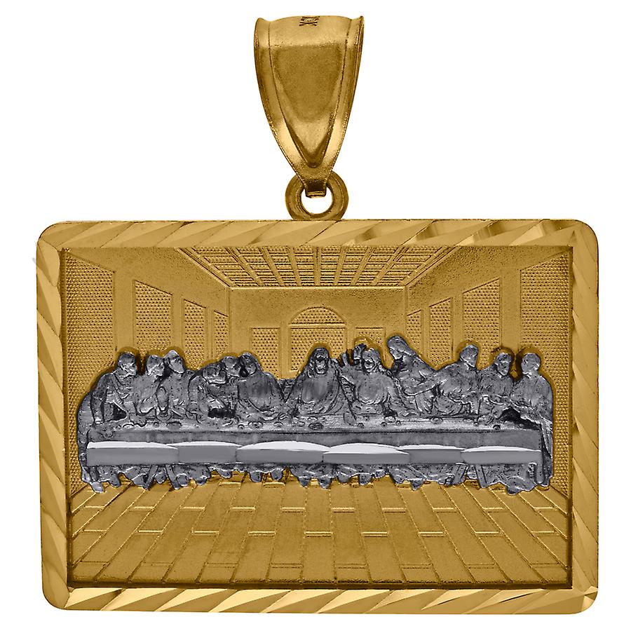 10k Two tone Gold Sparkle Cut Last Supper Religious Charm Pendant Necklace 36.9x34.2mm Wide-Pendant for Women