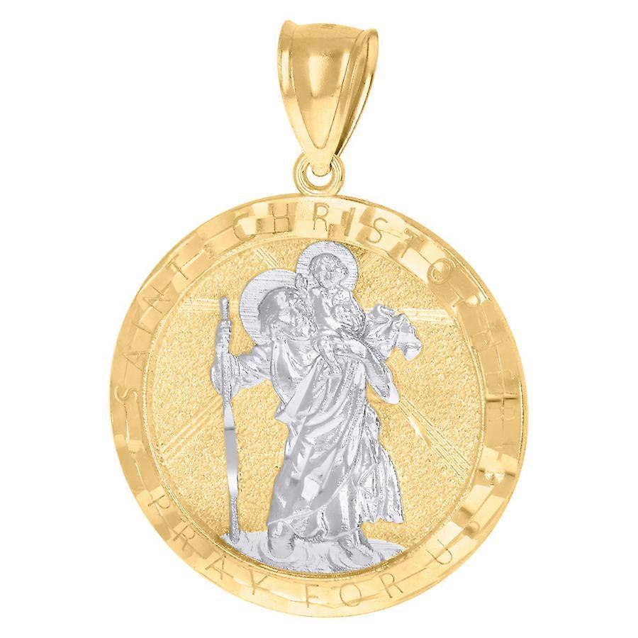 10k Two tone Gold Mens Saints St. Christopher Pray For Us Religious Charm Pendant 41.2x31.1mm Wide Necklace-for Men