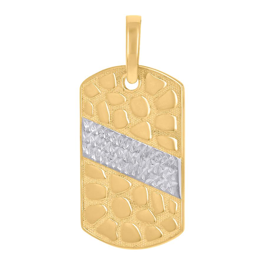 10k Two-tone Gold Mens Nugget Dog Tag Fashion Charm Pendant - Measures 34.8x16.5mm Wide - 3.4 Grams In 10k Yellow Gold - - This Item Does Not Ship With a Chain