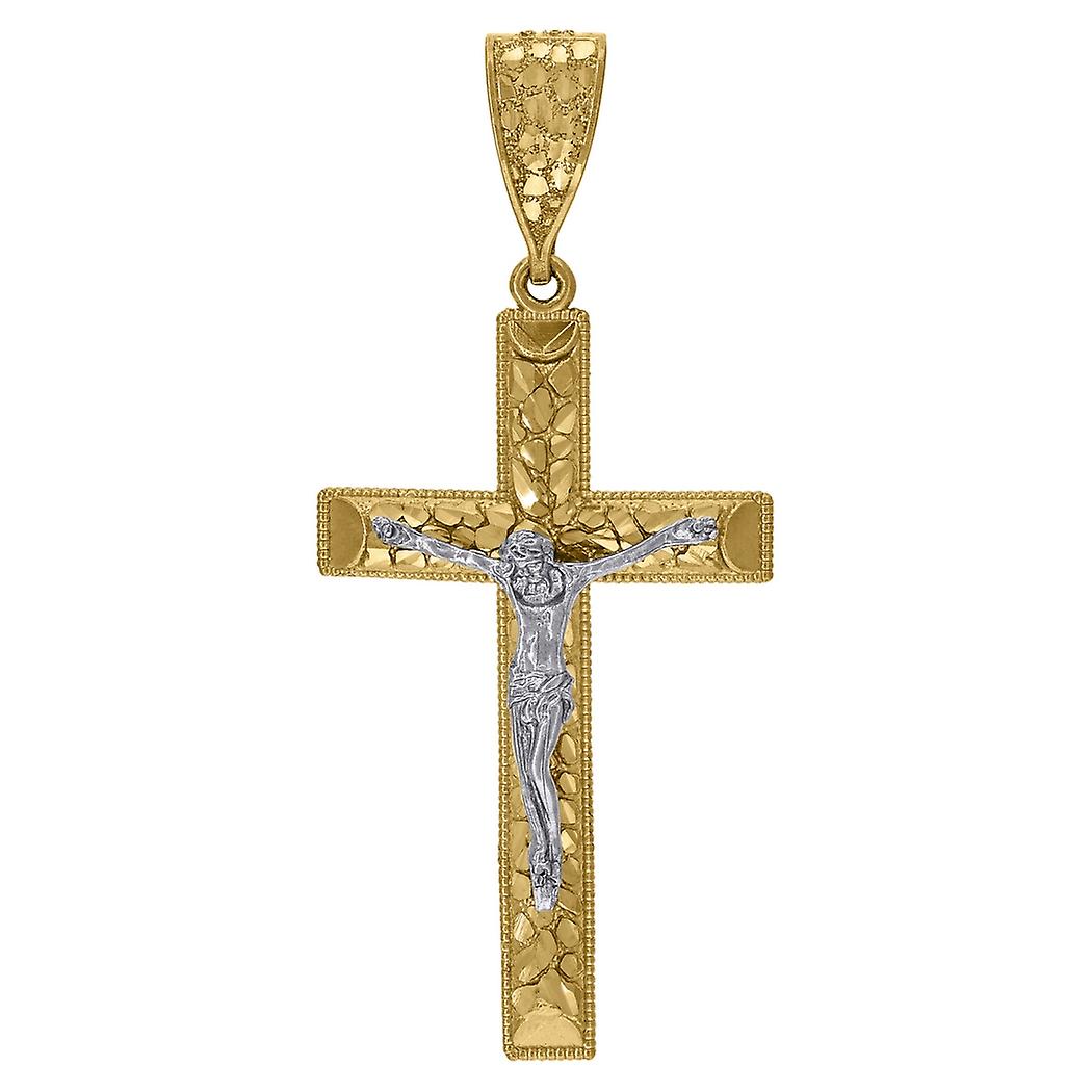 10k Two tone Gold Mens Women Sparkle Cut Crucifix Cross Religious Charm Pendant 49.9x30.1 Necklace for Men